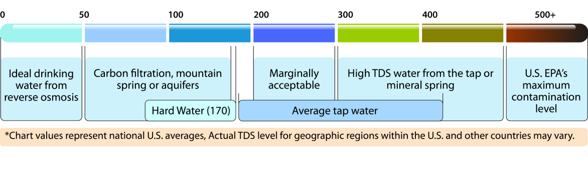 - Your unfiltered tap water has a TDS level of 100 ppm