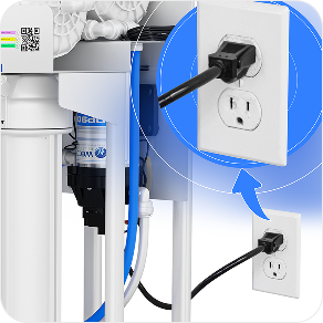 Added electric booster pump increases the RO production rate, boosts the pressure tank storage volume, rejects more contaminants and increases faucet flow rate even if the reverse osmosis membrane pressure rating is met by the water supply.