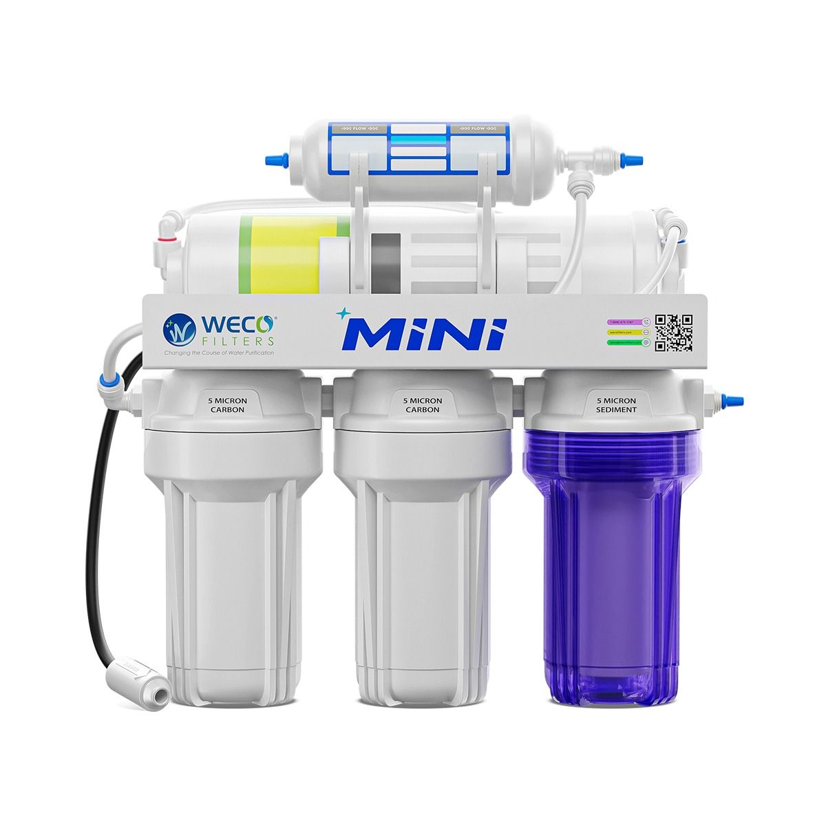 - Compact pre and post filter cartridges make this unit half the size of traditional RO filters.