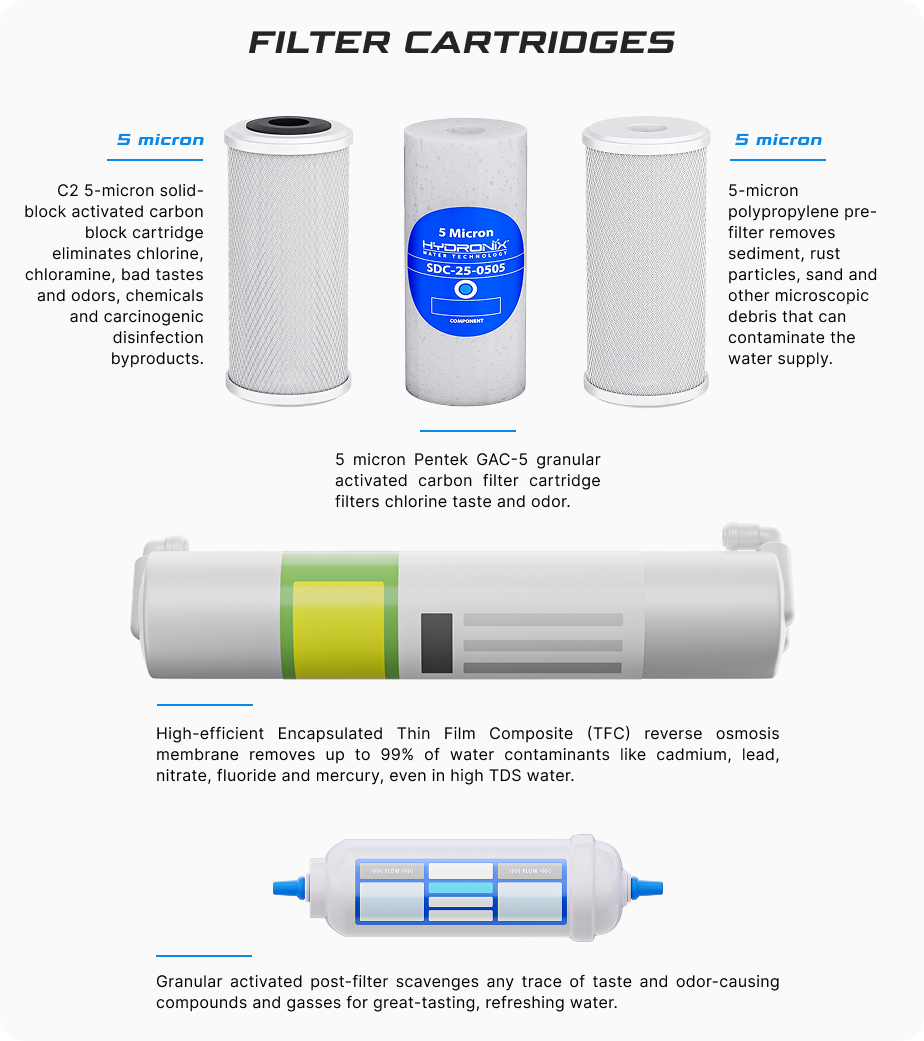 - These pre-filter cartridges are easy to replace and are half the size of standard RO systems.