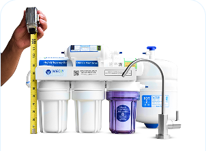 - Compact pre and post filter cartridges make this unit half the size of traditional RO filters.