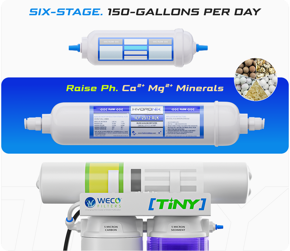 The WECO TINY reverse osmosis system is ideal for homes, offices, gyms, cafes, and anywhere fresh-tasting water is needed. It uses multiple filtration stages for pure, refreshing water: