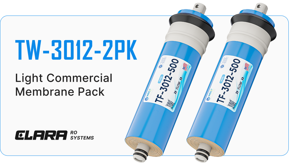 - High capacity 12" x 3" dual membrane pack for CLARA light commercial ro systems and compatible systems.